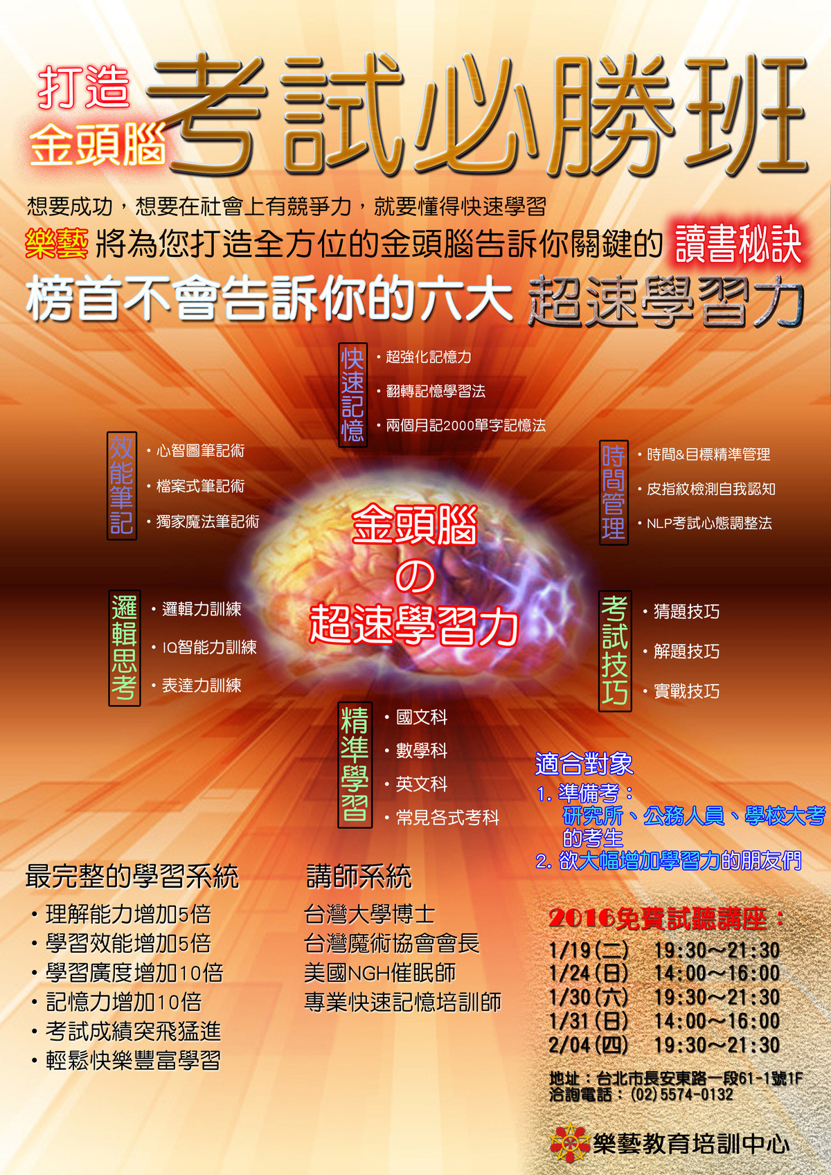 邏輯訓練 + 快速記憶 + 效能筆記 + 時間管理 + 學科應用 + 考試技巧